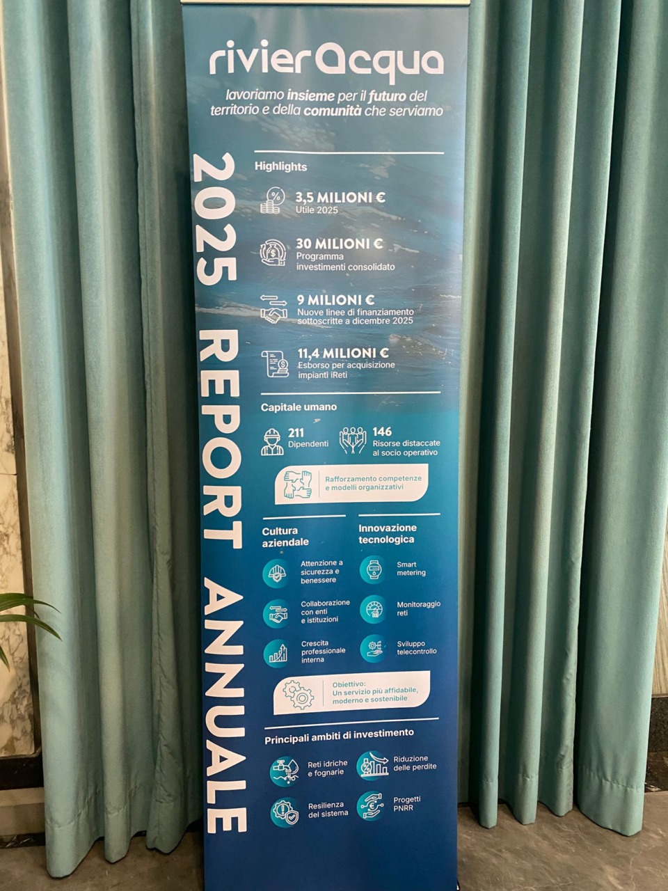 Secondo il report aziendale, nel 2025 Rivieracqua ha registrato utili pari a 3,5 milioni di euro, investendo 11,4 milioni per l’acquisto degli impianti precedentemente di proprietà di Iren. A dicembre 2025, la società ha inoltre sottoscritto linee di finanziamento per un totale di 9 milioni di euro.